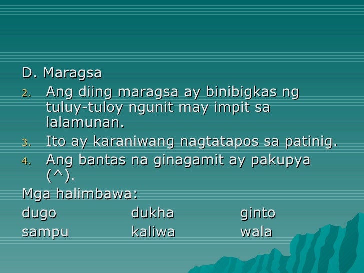 Malumay Malumi Mabilis Maragsa. Mga Tuldik bilang Instrumento sa Mas Malinaw na Pagpapakahulugan Sa Modyul 10 ating taluntunin ang daan patungo sa mundo ng ortograpiyaSabay nating pag-aralan ang isang aralin nito na makatutulong sa pagtiyak natin sa kahulugan ng mga salita. 50 halimbawa ng salitang pang uri - 1949002 1.