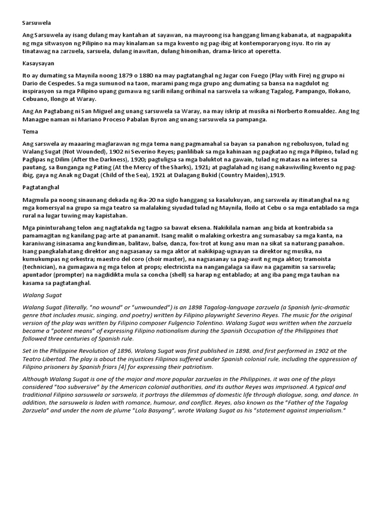 Halimbawa ng sarswela tagalog. Sarsuelang Tagalog na Sinulat ni Precioso Palma Linapitan ng Tutgtugin ni Leon Ignacio. Kasaysayan At Halimbawa Ng Zarzuela. Nagsimula ang seryeng ito noong siya ay naging patnugot ng.